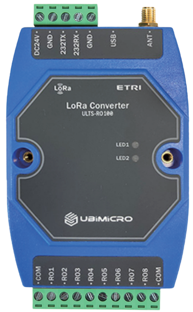 8채널 스위칭 무선 LoRa 통신 장치로 각종 장비들로부터 발생하는 다양한 신호를 무선통신으로 변환시켜 원거리 통신이 가능하도록 하는 장치입니다.